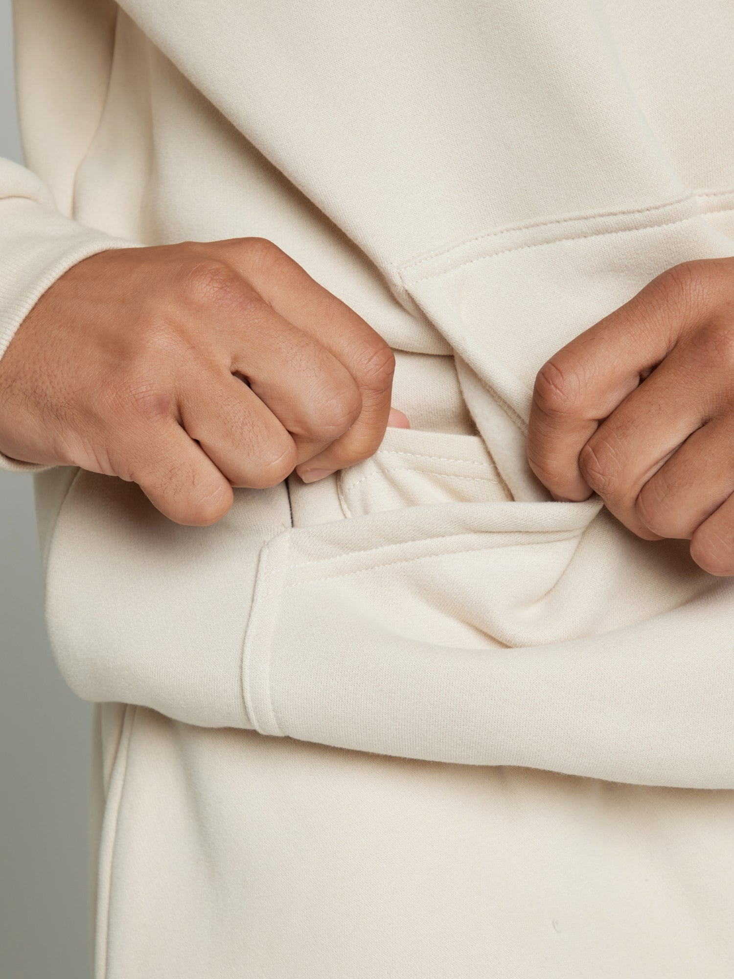 Wrap yourself in Comfrt and unplug with Airplane Mode. Made from our ultra-soft Combed Cotton Blend™, this hoodie is built for long flights and even longer naps. A built-in contoured eyemask lets you snooze in peace, while zip sleeve pockets keep your AirPods close. Hidden compartments inside the kangaroo pocket store your passport, ID, and cash securely. Finished with an oversized, double-lined hood for total comfort—no matter where you land.